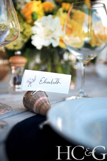 A shell place-card holder on the dinner table.