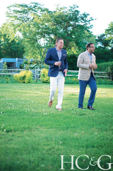 Scott Nelson and Harry Slatkin take a stroll during cocktail hour.