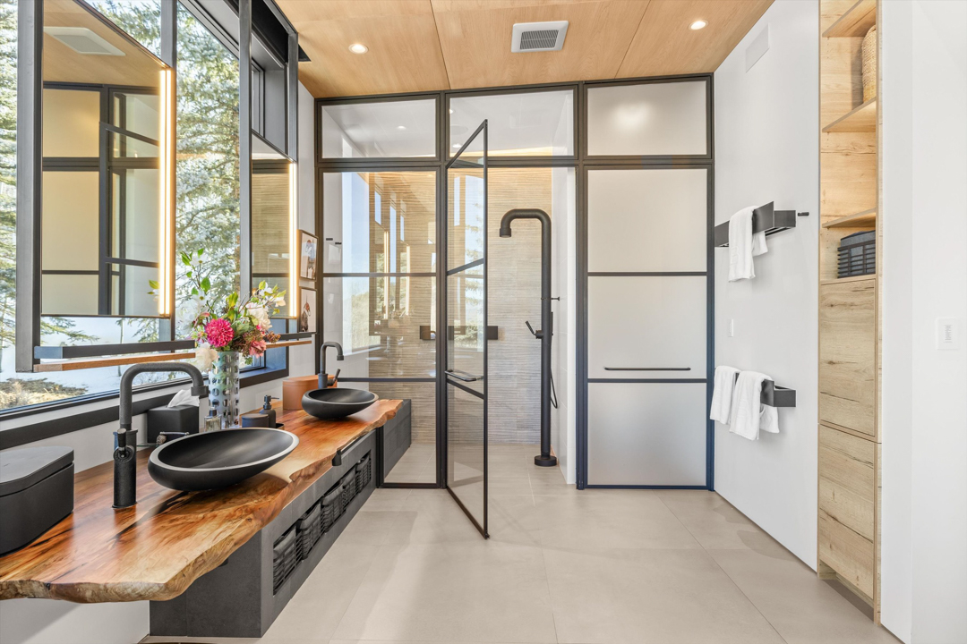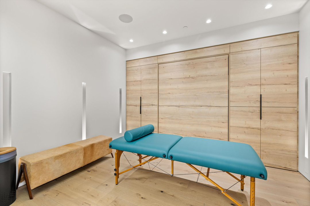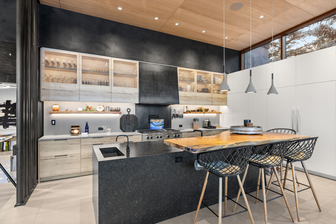 The project was completed at the end of 2021 and has a cool, modern edge to it that clearly shows fashionable finesse. Think: Floating staircase, large expanses of glass overlooking the mountain, a live-edge wood counter atop the kitchen island. Spanning more than 6,900 square feet, there are five bedrooms, six full bathrooms, and one half-bath. Ideal for wellness, the lower level boasts a spa room, gym, and hangout area—and all floors are connected via elevator. For this price, the new owners can also put on alfresco ápres ski parties in luxe Aspen style using the suave patio, hot tub, pizza oven, and two gas fire pits.