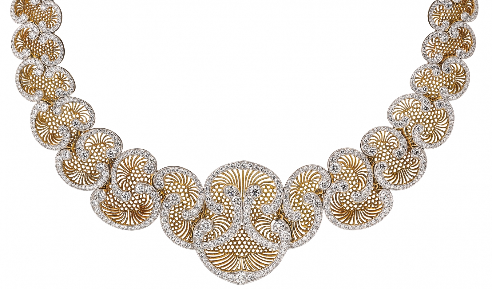 Sometimes it is art or architecture, and sometimes it comes from countries, cultures, traditions, and sometimes it is fashion. Recently, I was inspired by some pieces of lace that I bought, and I designed a very contemporary necklace keeping the delicacy and lightness of the lace but incorporating the Buccellati craftsmanship.