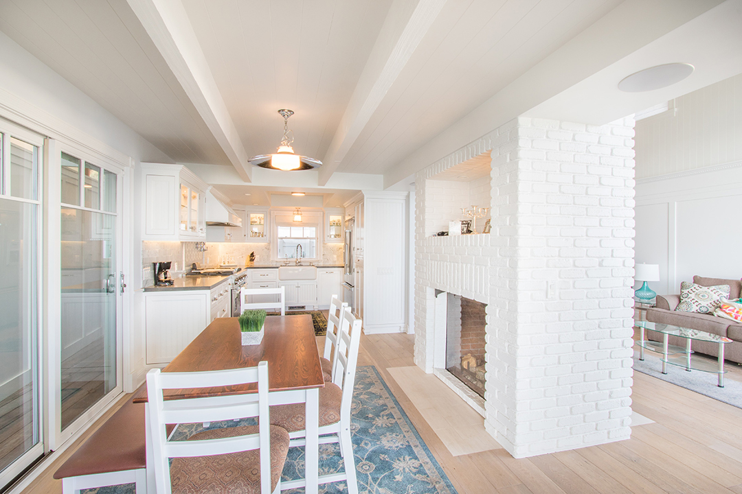 Built in 1947 and extensively renovated in 2013, the home has a modernized, Cape Cod style and is full of luxurious finishes like white oak flooring and marble countertops. The two-sided, see-through fireplace in the main living space is a unique and stylish addition that surely won over the buyers.