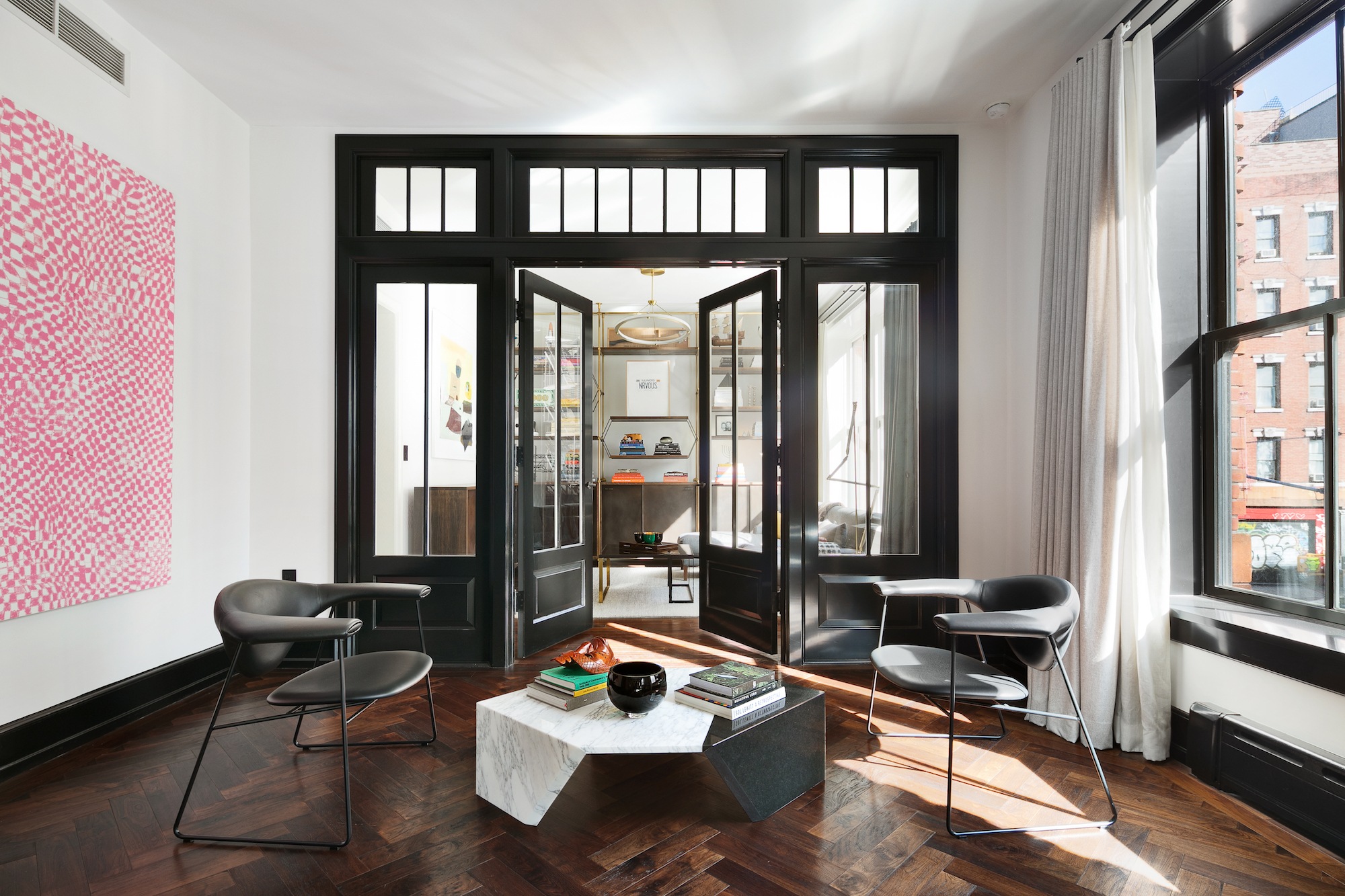 Karlie Kloss’s Nolita apartment is newly listed and ready for its close up. The celebrity wears many hats as a supermodel, entrepreneur, and now the new host of Project Runway, filling the shoes of fashion icon Heidi Klum. Kloss is also a newly wed and settling into married life with husband Joshua Kushner, brother of Ivanka Trump’s husband Jared Kushner. The pair won’t be calling this gorgeous pad home any longer, though, as it’s now on the market asking $6.995 million.Located at 211 Elizabeth Street in one of the most coveted downtown condominiums, the sophisticated apartment reflects its owner’s style and grace. Design firm Roman and Williams crafted the stunning home that features herringbone wood floors, intricate millwork, and exquisite materials. This peek into Kloss’s Manhattan home confirms what everyone already knew: That the model has impeccable taste.Within only 1,120-square-feet, there are 2 bedrooms, 2.5 bathrooms, and fashion-forward living spaces. The lush terrace has three access points, so guests can flow in and out easily during glamorous parties. Looking more like a dreamy photoshoot set than a person’s real-life home, the chic terrace offers a gas fireplace, lounge areas, and two pergolas covered in ivy.More Instagram-worthy spaces are right through French doors, with the kitchen especially drawing the eye. Black cabinetry and walnut floors create a dramatic and moody vibe, making even the most mundane weekly meal prep high-fashion and exciting.Nick Gavin of Compass holds this exceptional listing, which will take your breath away from the moment you walk in and continue to do so as you round each corner. This new listing was first reported by 6sqft.