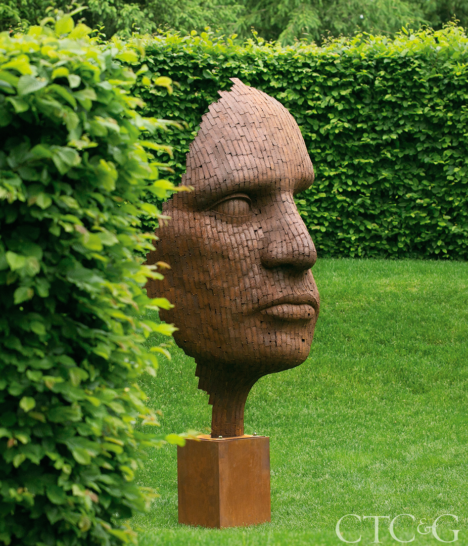 Minor works of land sculpting allow works of art to sit in slightly exaggerated spaces. By incorporating sculpture, the overall design concept is transformed, and the experiential quality of the spaces is enhanced. Brave New World by Rick Kirby nestles into the space formed by a circular Carpinus hedge.