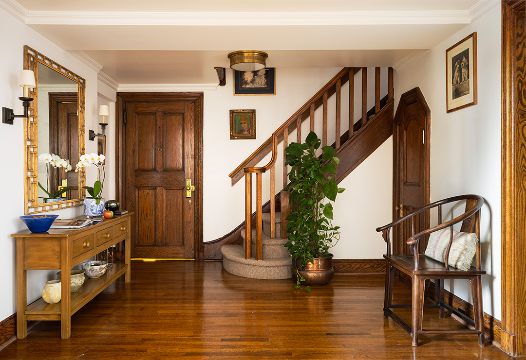 The home’s exquisite woodwork follows you throughout, perhaps peaking with the English oak wainscotting in the dining room. This space with timeless, traditional beauty saw robust use during Rubin’s many years here. Listing agent Jay K. Overbye of Brown Harris Stevens told Mansion Global that, “Stephen, the consummate host and connector, had 18 chairs around the table. When you walk in, you feel like you’re transported to a different time, and you can feel the energy of entertaining.”