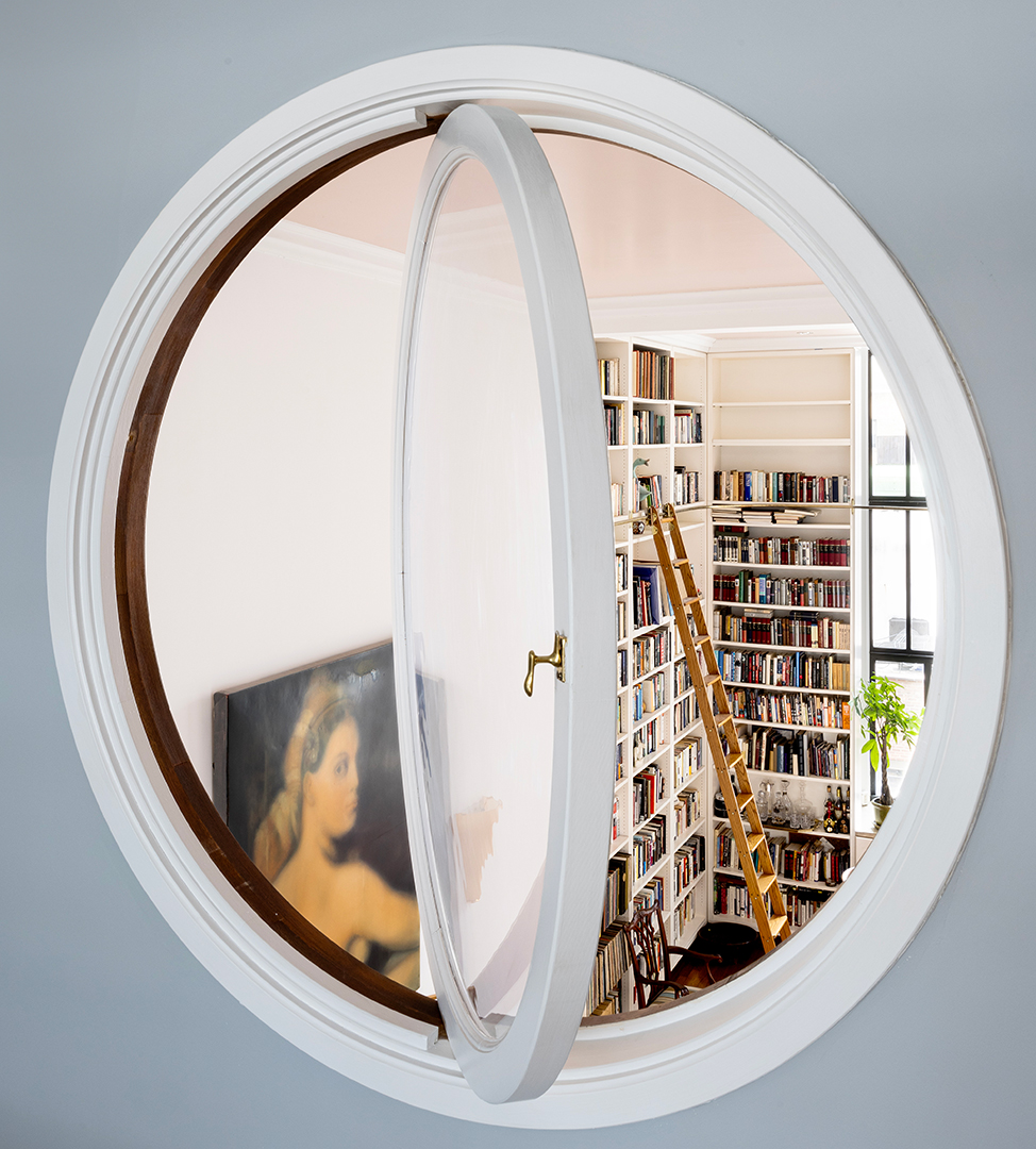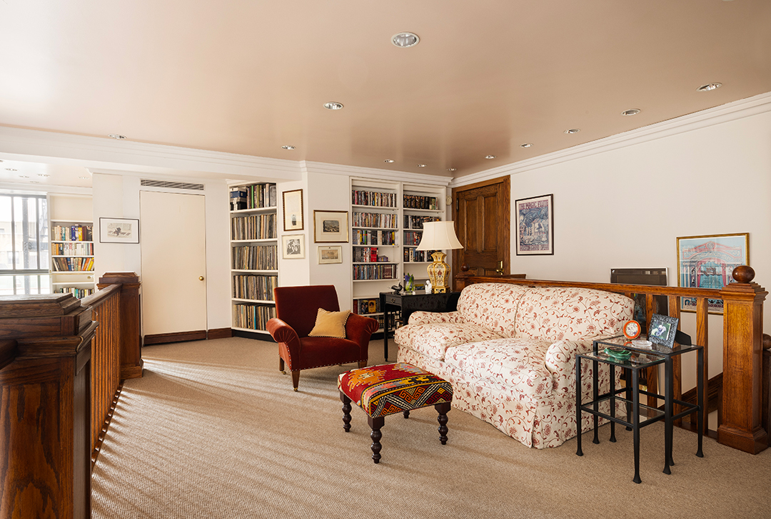 Rubin purchased the three-bedroom duplex, perched on the 9th and 10th floors of the co-op Central Park Studios, in 1998. While many Manhattan apartments sit in historic buildings, this sun-drenched unit harnesses historic and architectural charm in a most enchanting way. You can especially sense traces of Rubin’s legacy with the great room’s soaring high bookshelves, accented by a rolling ladder, of course.