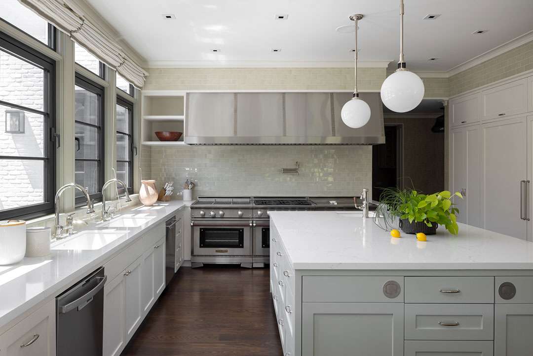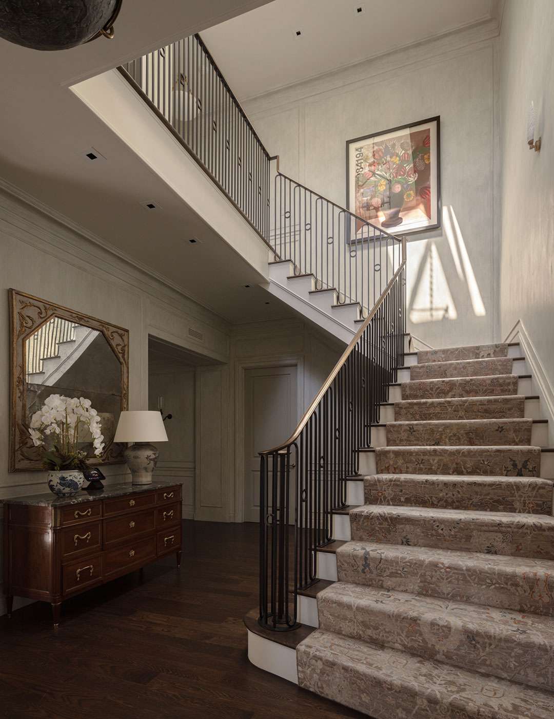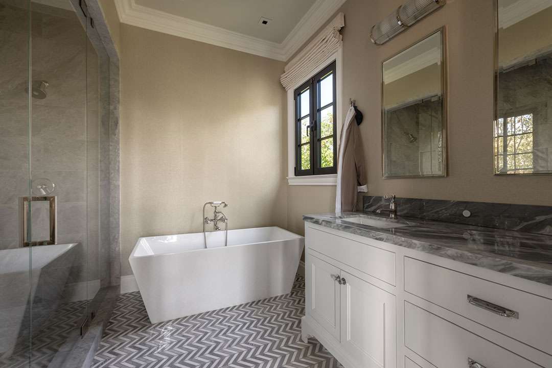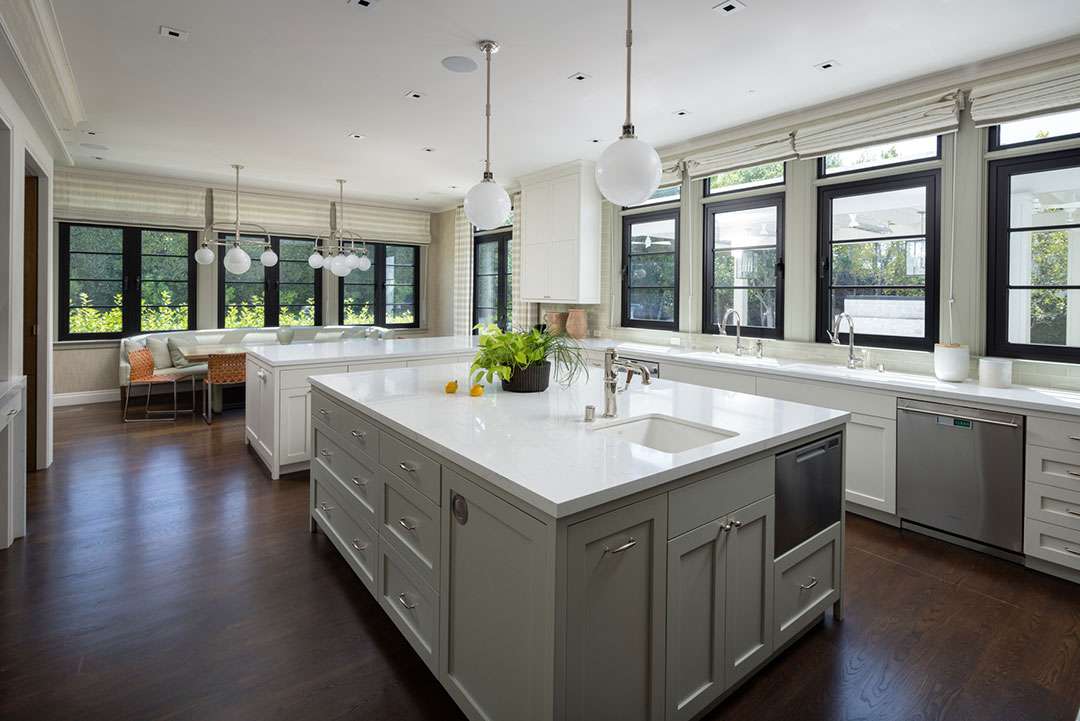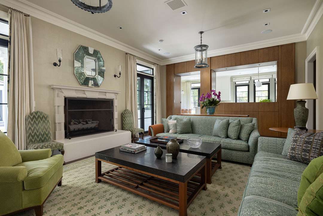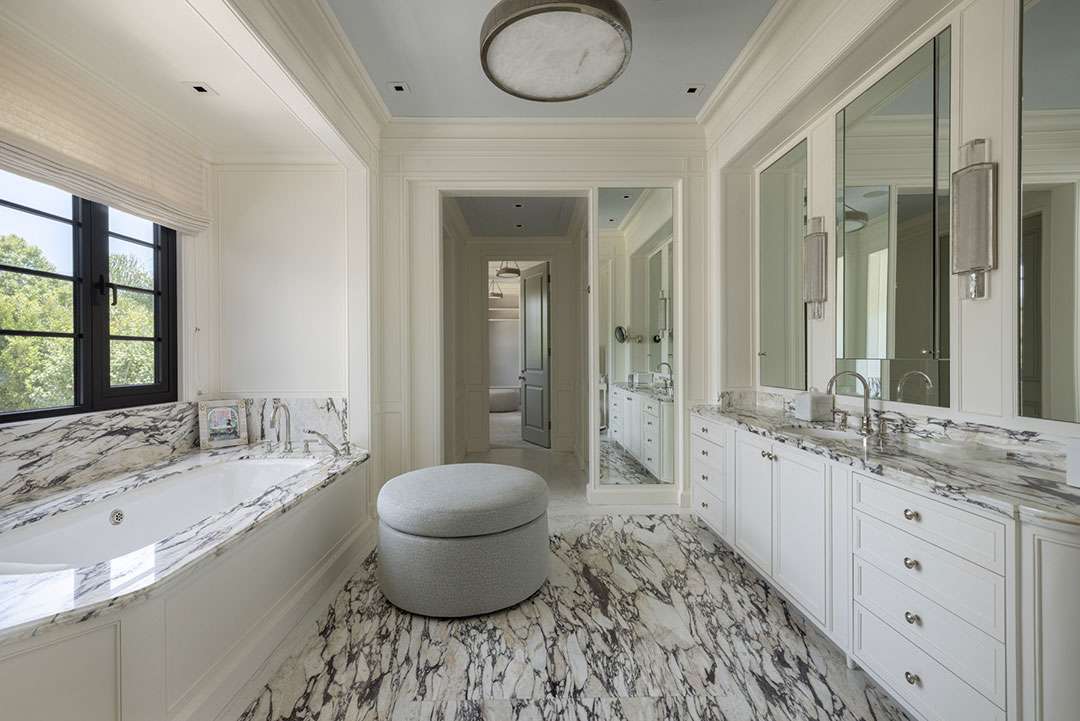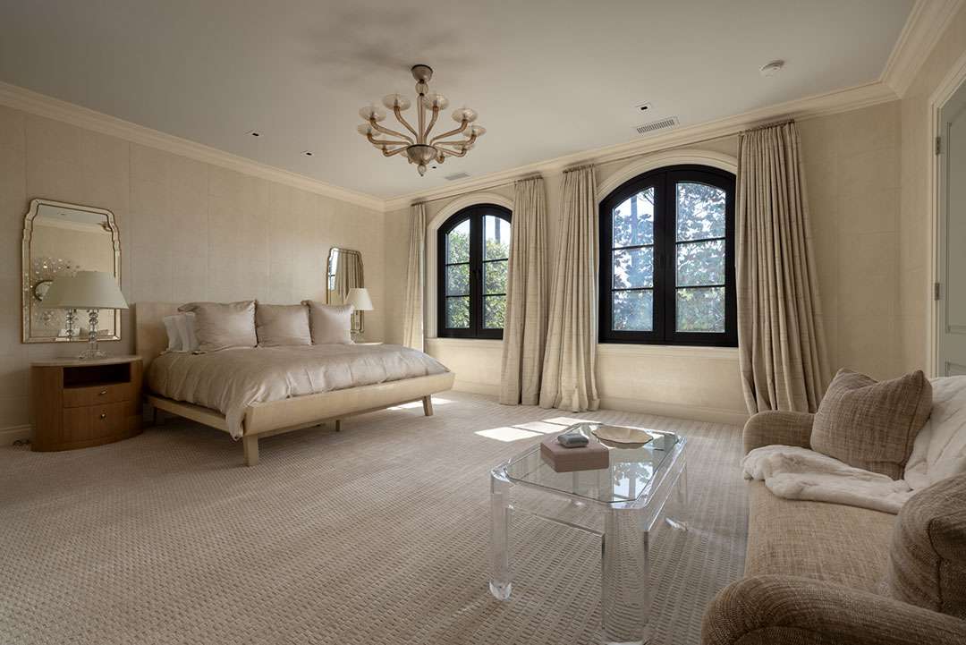The interiors—which consist of 7,448 square-feet—were designed by the renowned Michael Smith, who preserved and designed the White House under the Obama administration (redoing the Oval Office in 2010) and has worked with acclaimed producer Shonda Rhimes. The tailored, upscale design features neutral color schemes, subtle patterns, and sumptuous materials across five bedrooms and eight bathrooms.