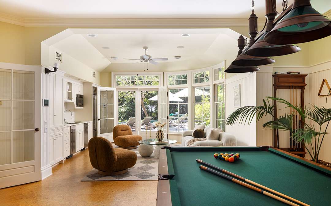 With plenty six bedrooms, a cozy family room with a media center and fireplace, a well-equipped chef’s kitchen with Sub-Zero refrigeration and Viking Range, along with a formal living room and dining room, the house has great capability for hosting, but that’s not all the home has to offer. Welcome wellness amenities consist of a 50-foot saltwater pool, meditation garden, koi pond, expansive lawn, and a gym.