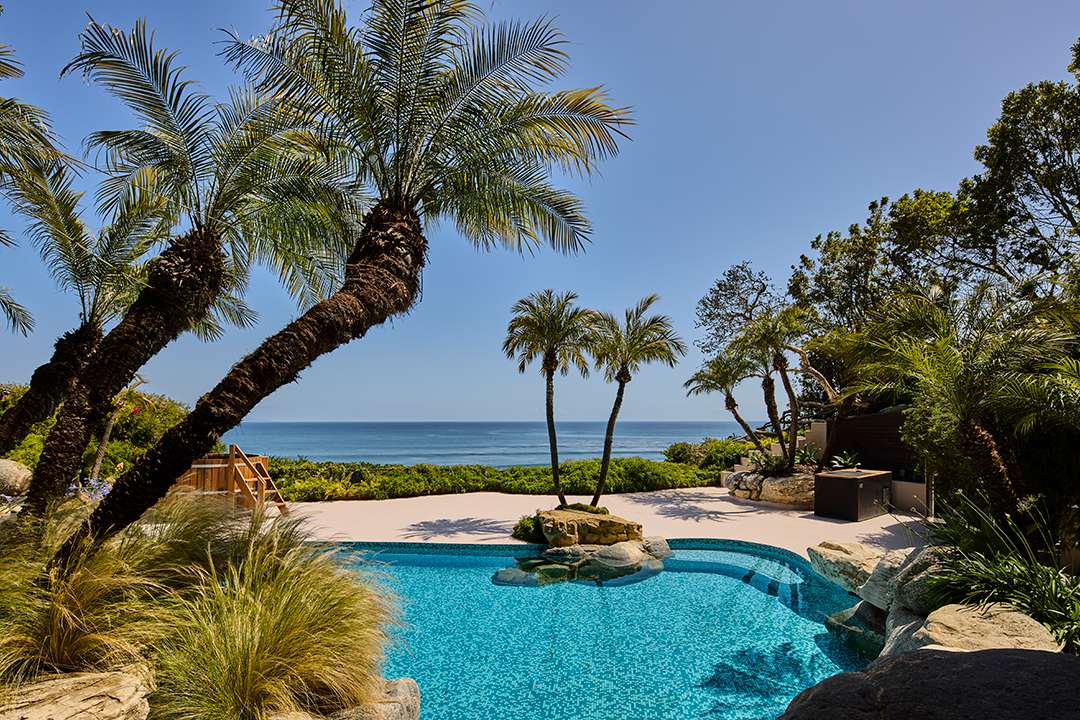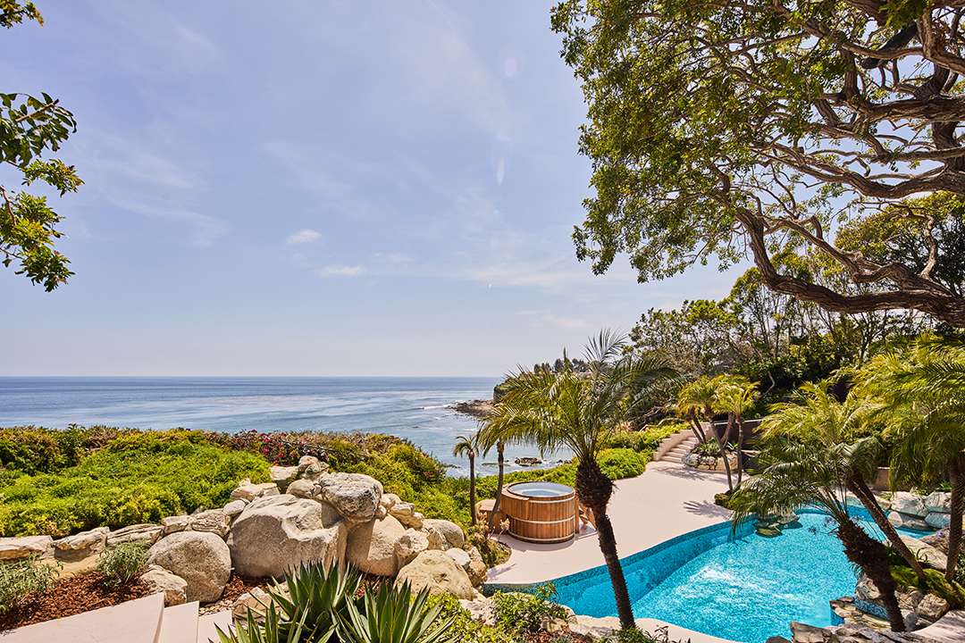 Delivering the dream California lifestyle, you can stroll out to the expansive terraces for happy hours or quiet meditation near the a koi pond, jungle-like trees, and saltwater pool. The grounds also offer an oceanfront jacuzzi, sauna, and cold plunge while the interiors beg for entertaining with a wet bar, screening room, and wine cellar. Luxuriously, the primary suite occupies the entire second level, while there are four other bedrooms to discover as well.
