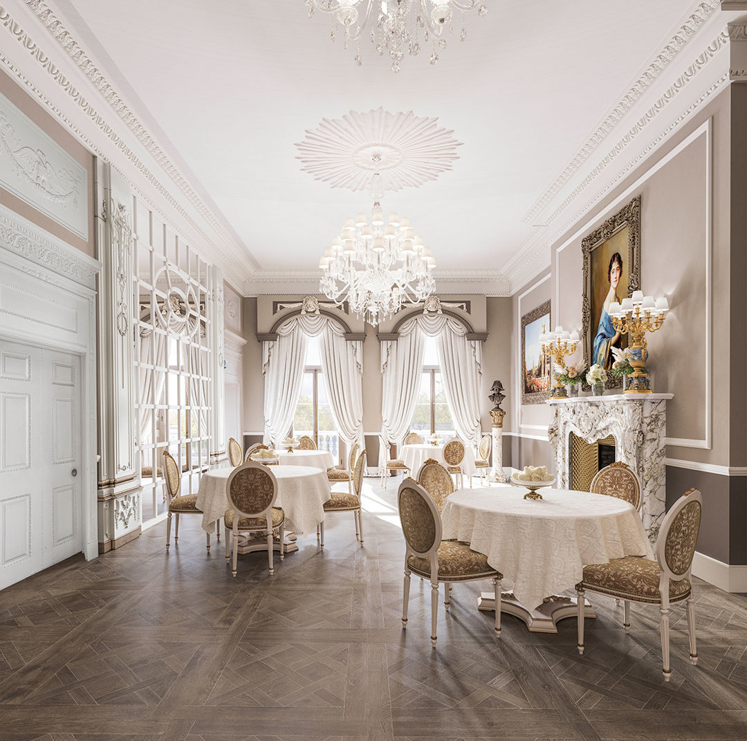 Renderings of a future vision for the Grade II building are courtesy of design house Casa E Progetti. They were inspired by the work of celebrated French interior designer Stéphane Boudin, who refurbished the White House under the direction of Jackie Kennedy. The sweeping staircase hall of marble and wrought-iron railings give way to rooms of similar grandeur like the library and study. It was in this room that Lord Byron wrote his tragic verse Parsinia and his narrative poem, The Siege of Corinth.