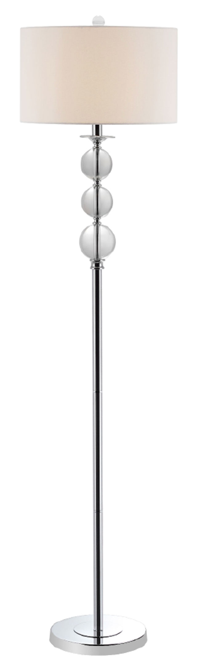 The Safavieh floor lamp showcases three elegant glass balls fitted at the top of a metal stand. LIT4105A, Stamford, 203-327-4800, safavieh.com.
