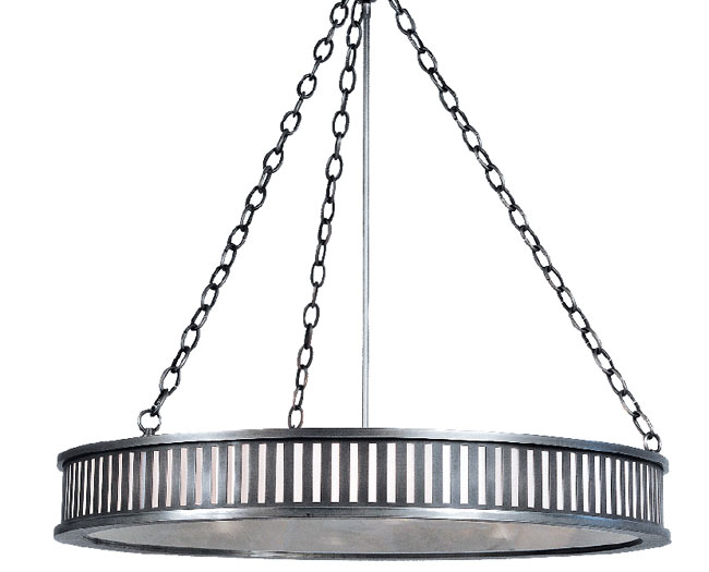 Urban Electric’s custom CHP circular lighting fixture has a blackened pewter finish with a translucent, antique glass mirror. Designed by Michael Amato, North Charleston, SC, 843-723-8140, urbanelectricco.com.