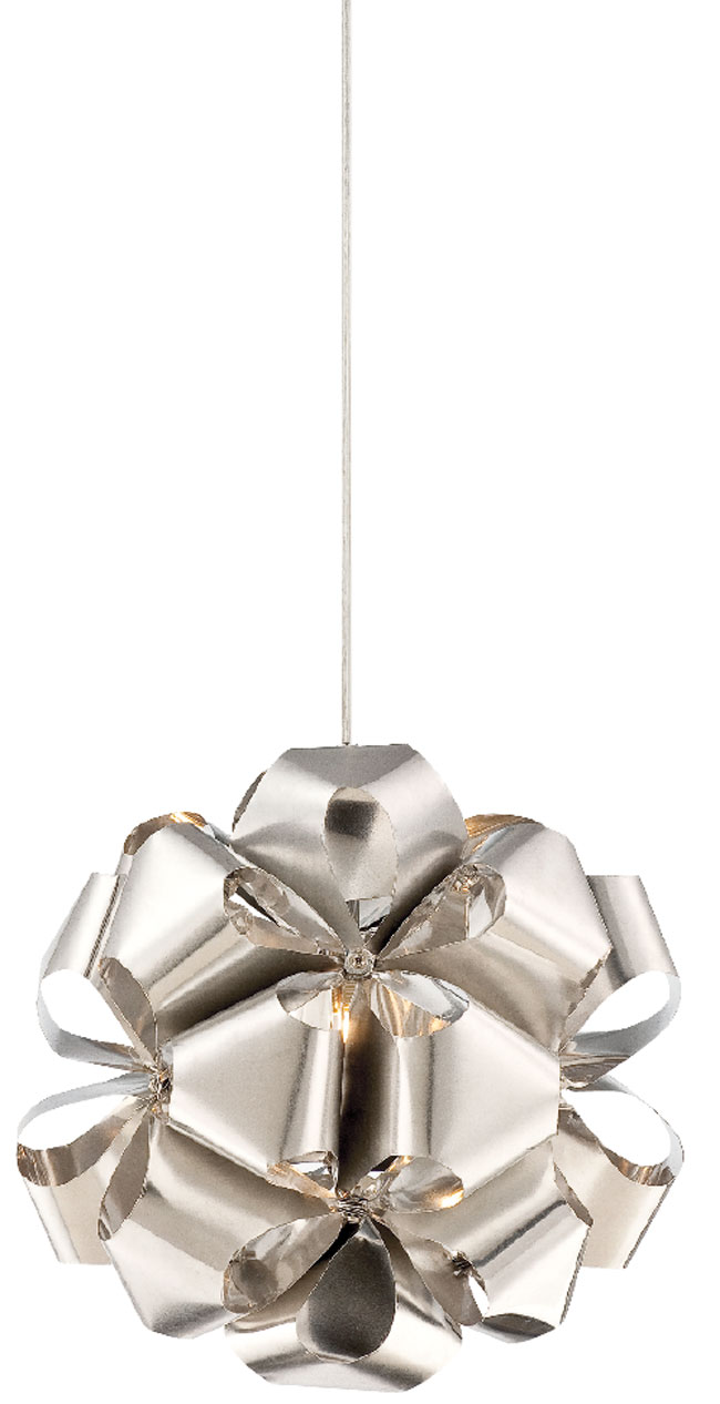 Bows made of polished recycled aluminum create this mod Cindy pendant. Varaluz, available at Klaff’s, Norwalk, 203-838-6799, klaffs.com, varaluz.com.