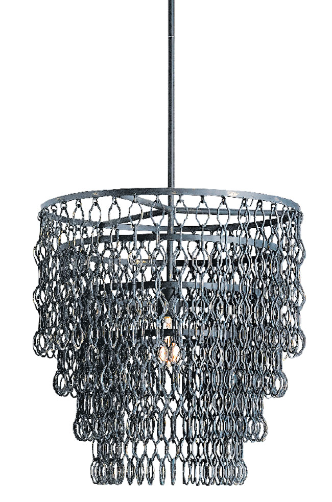 Stunning strings of chainmail create a new, eclectic interpretation of the French Empire design. Restoration Hardware’s 19th Century French Empire Chainmail chandelier, Westport, 203-222-1027, Greenwich, 203-552-1040, restorationhardware.com.