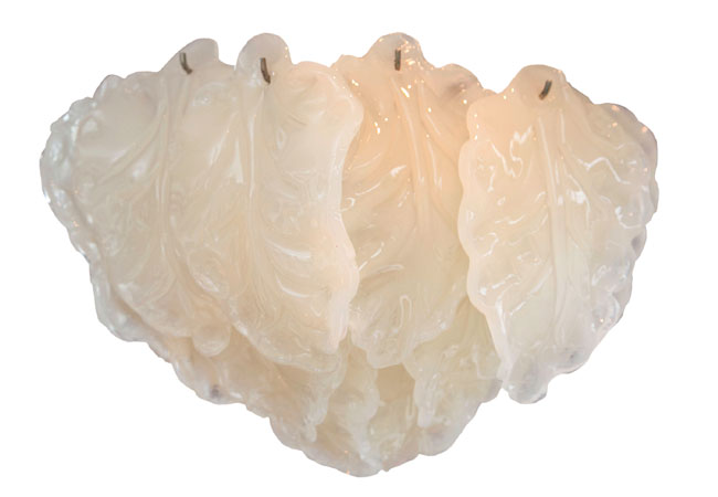 An elegant 1960s chandelier showcases several off-white overlapping leaves, hand-fashioned to create a layered look. Murano Leaf chandelier, Montage, Westport, 203-349-5859, montagemodern.com.