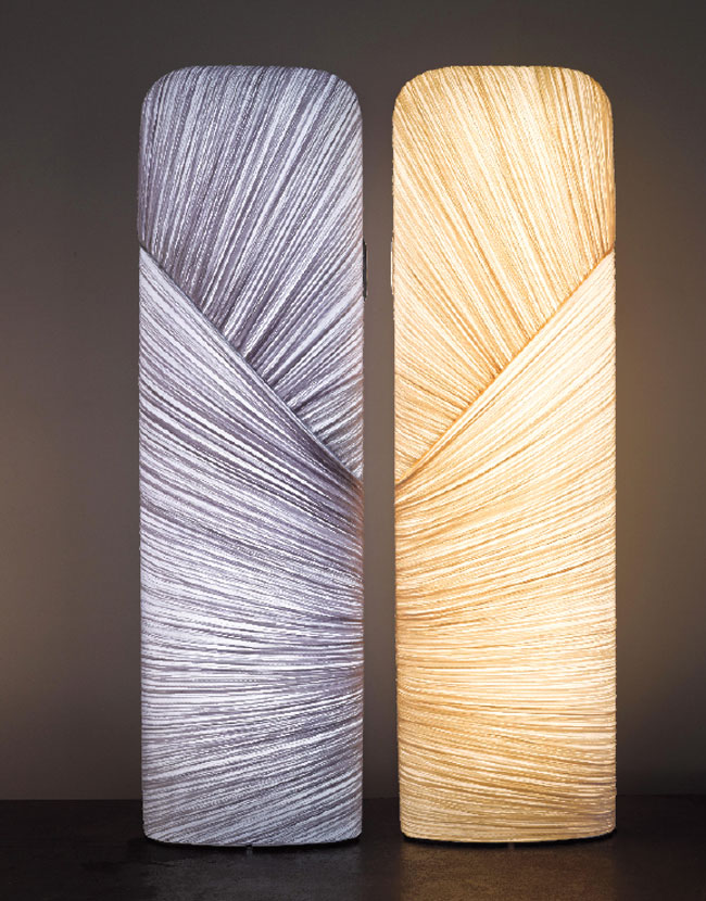 The exquisite Foglia floor lamp presents a unique draping of aluminum, rubber and vellum materials. Elizabeth Polish, Long Island City, NY, 718-383-3696, elizabethpolishdesign.com.