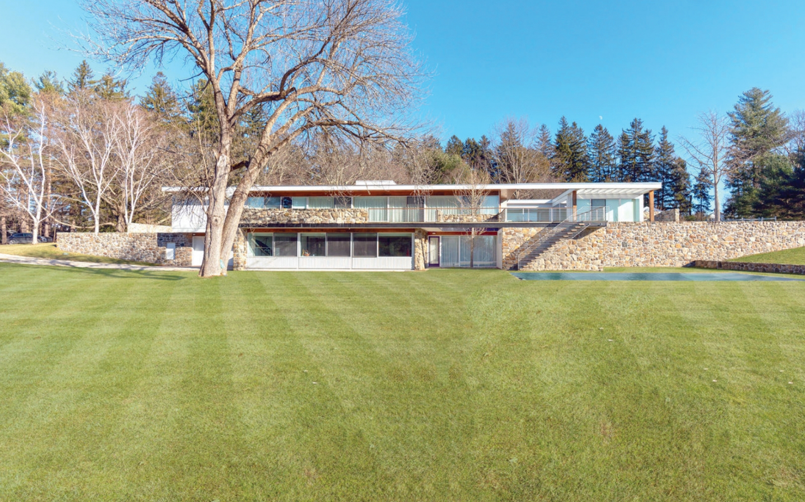 Check out the circa-1957 home in the town of Litchfield built by Bauhaus architect Marcel Breuer and listed for $3.8 million. Called Gagarin I, the two-story modern master is centered on a double-height, glass-walled living room with a sculptural fireplace.