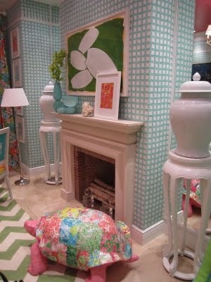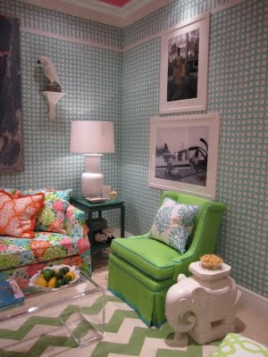 The room mixed Lilly with great accessories and furniture, showing applications of the fabrics in a variety of appealing ways.