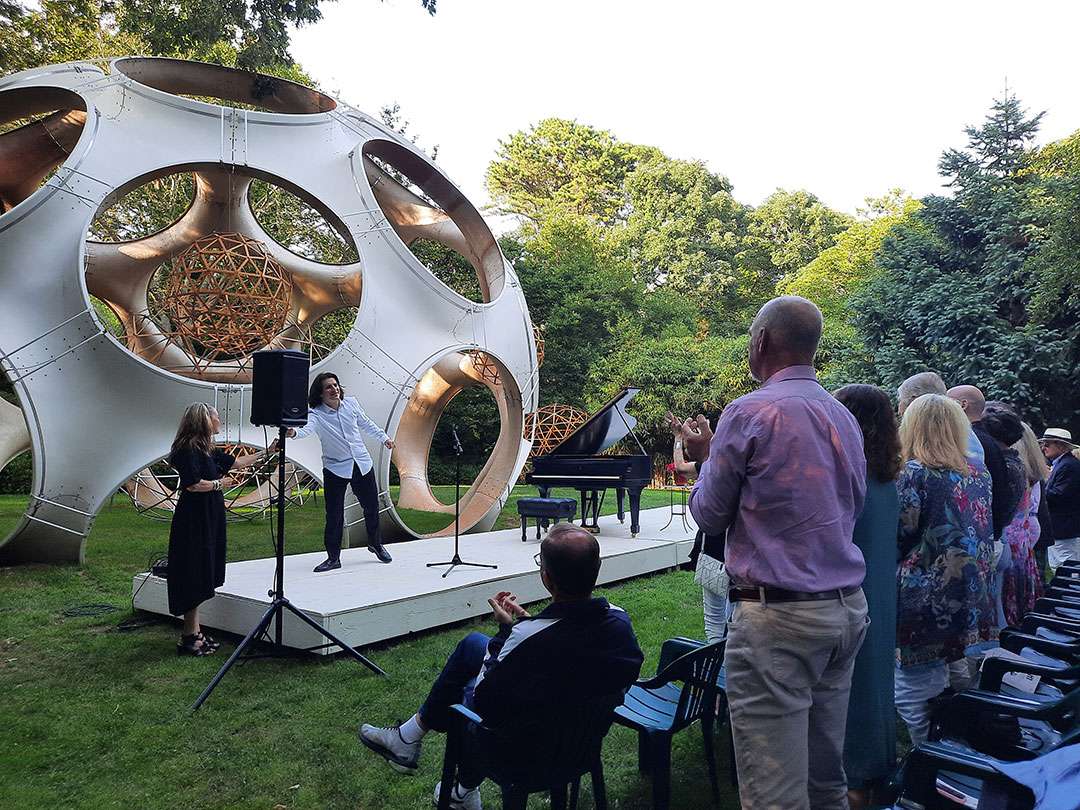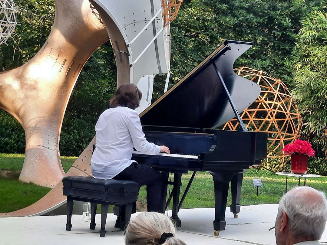 An outdoor piano concert on an August evening was a feast for the senses as audience members gazed at the garden’s beauty and sipped wine while listening to the virtuoso performance of celebrated pianist Llewellyn Sanchez-Werner. Sponsored by philanthropist Barbara Tober, the open-air concert featured works by Bach, Ravel, Chopin—each composition introduced by Sanchez-Werner who recounted its history and current relevance.