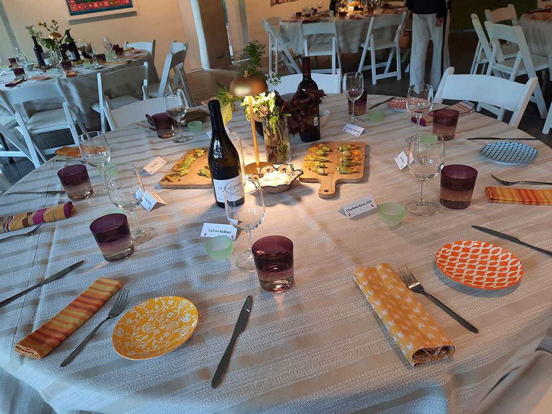 Dinner was served among art exhibits on the LongHouse patio