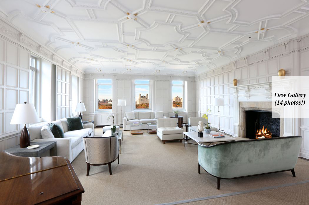 A swanky, three-level penthouse right across from the Metropolitan Museum of Art just hit the market and its high price will weed out most buyers. Asking a staggering $52 million, the Upper East Side residence is a mansion in the sky, offering 6,200-square-feet of space inside and 1,200-square-feet of space outside. It’s for sale for the first time since the 1980s, making it all the more exclusive and intriguing.The Nasser family, who made their money in textile manufacturing, have owned the abode for many years and even had the legendary Sister Parish design the interiors when they first picked it up. Now that no one is using it, Mansion Global reports, they are ready to let it go.There are endless opulent elements at this 5-bedroom masterpiece, including the Belgian granite floor in the entry and dramatic detailed ceilings in the grandiose living room. A recent renovation brought contemporary style and updated appliances into the unit, but five ornate fireplaces always remind you of the history that exists in the circa-1927 building.Rosario Candela designed the structure with this apartment as its crown jewel. Anyone who possesses such a beauty, with terraces that offer sumptuous space for entertaining and taking in stunning Central Park views, will surely be the envy of New York high society.Sotheby’s International Realty agents Harry Nasser and Lois Nasser, who are both related to the sellers, have the listing.
