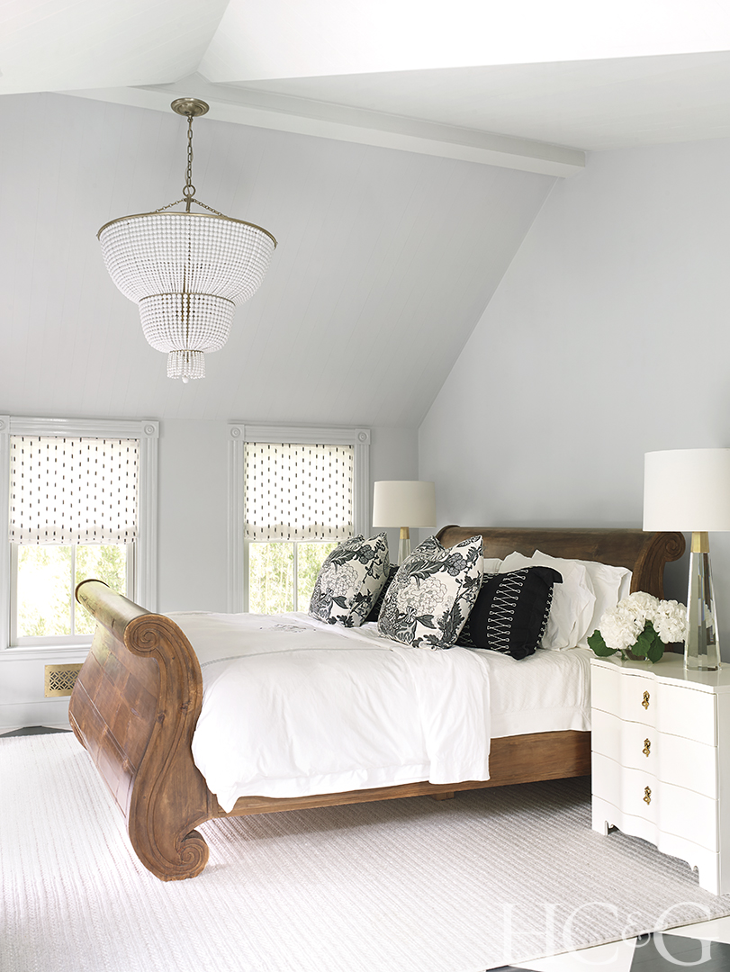In the master suite, Bungalow 5 nightstands flank an antique sleigh bed.