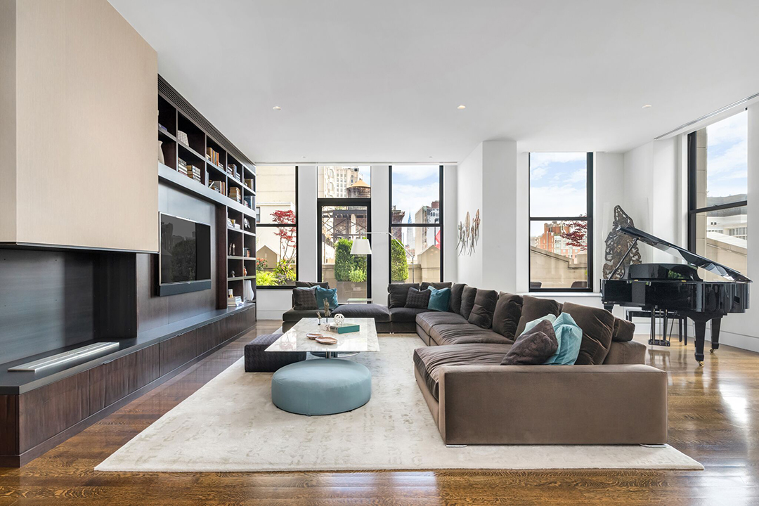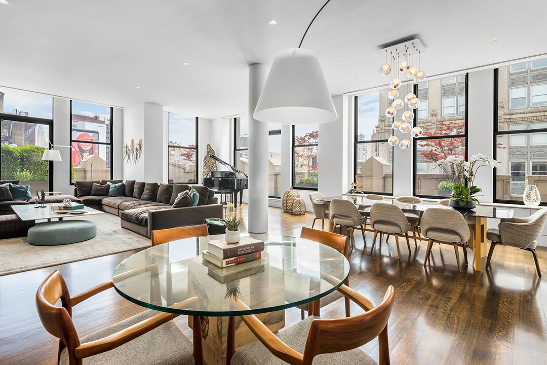 In the Flatiron District, the ultimate apartment for outdoor entertaining just hit the market asking $15 million. Architect and designer Adriana Solmson is responsible for the amazing design of this sophisticated penthouse, which she helped reach its full potential with a renovation in 2010.The luxurious residence boasts stark white walls and 12 foot ceilings which amplify the grandness of the apartment’s 4,000-square-foot floor plan. Clean lines and sleek materials create a modern aesthetic. Double-height windows provide endless cascading natural light that carries through the chic unit’s four bedrooms, and three and a half bathrooms.More than anything, though, it is the impressive 3,000-square-foot, wraparound terrace that commands attention. Providing ample room for entertaining, the terrace offers outside barbecue, kitchen, and a covered dining area. The impressive outdoor space also boasts landscaped greenery, which provides a lively and relaxed feel to the abode.Located at 260 Park Ave South, the residence is right in the thick of Fifth Avenue’s best shopping and restaurants. Kane Manera and Sarah Bond of Corcoran have the exquisite listing, which also features its own private elevator landing.To get your daily scoop of real estate news, sign up for the dailyDEEDS newsletter!