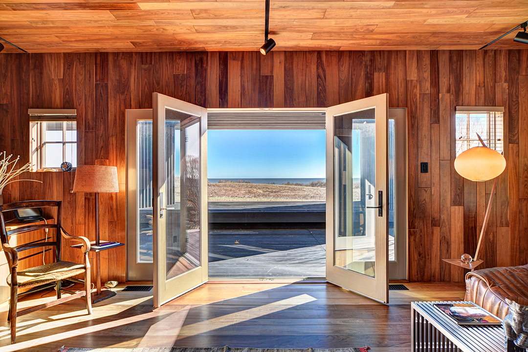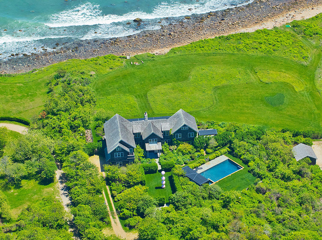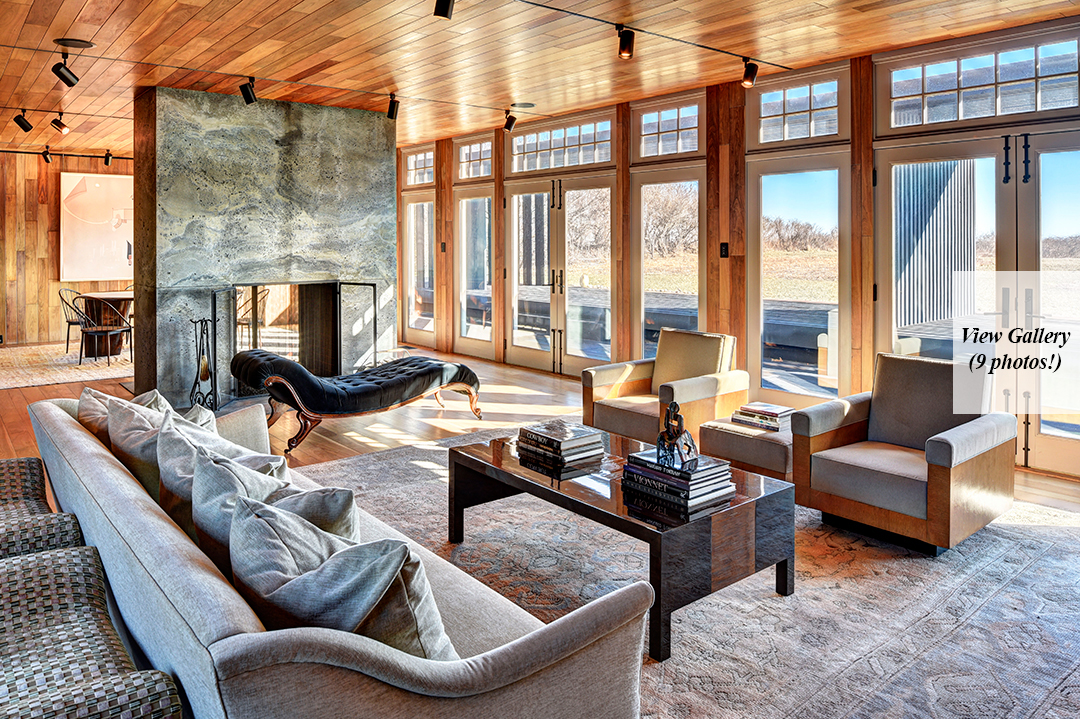 In the August 2017 issue of HC&G, the compound at 404 & 406 Old Montauk Highway was dubbed “This Issue’s Biggest Deal.” A sprawling, three-acre spread in Montauk, the property owned by art collector Adam Lindemann was then asking $23 million. Two years before that it sought a steeper $29.5 million, and now, offering an additional three-acre parcel of land, the estate has returned to the market at a price somewhere in the middle, $24.95 million.In addition to the listing’s new acreage, the home itself has also undergone a significant upgrade. Already in 2019 the home has undergone a significant redesign, safely in the hands of acclaimed designer Bob Melet with “design elements” coming from Sir David Adjaye as well. Completely furnished and turnkey, the 7,500-square-foot end result includes 6 bedrooms and 8.5 bathrooms.A traditional exterior holds modern yet inviting interiors, which is felt most with the vast, open floor plan. Upon entrance, a gigantic, light-filled space holds a dining room and living room. Separated by a freestanding, 2-sided fireplace of poured concrete, the areas introduce Melet’s modern take on wood-paneled walls. They bring a warmth to the home that follows you to the remaining living areas, including the kitchen and master suite. One level below, a finished basement is populated by a vintage bar, home theater, wine cellar, and staff suite with separate staircase leading to the kitchen. A heated Gunite pool rounds out the property’s amenities.Each room is bound together by two things, according to listing with agent Gary DePersia of Corcoran; “impressive views … [and] handsomely-finished walnut floors.” The former is arguably the oceanfront property’s greatest strength. With the iconic Montauk lighthouse in the background, who wouldn’t want to watch ships set sail whilst the sun sets?
