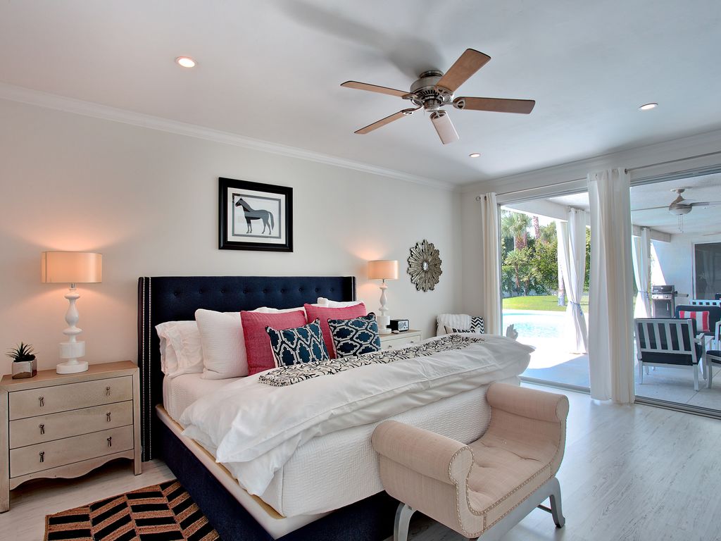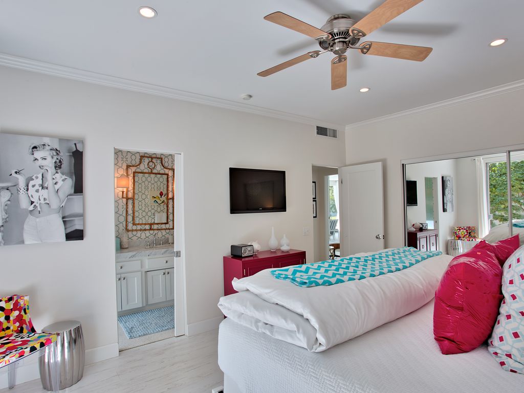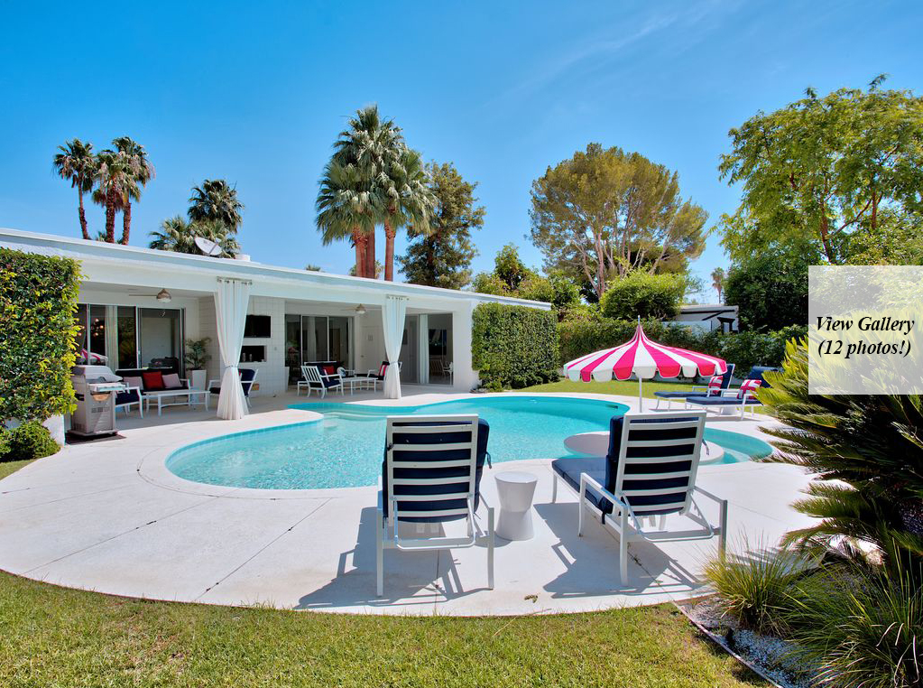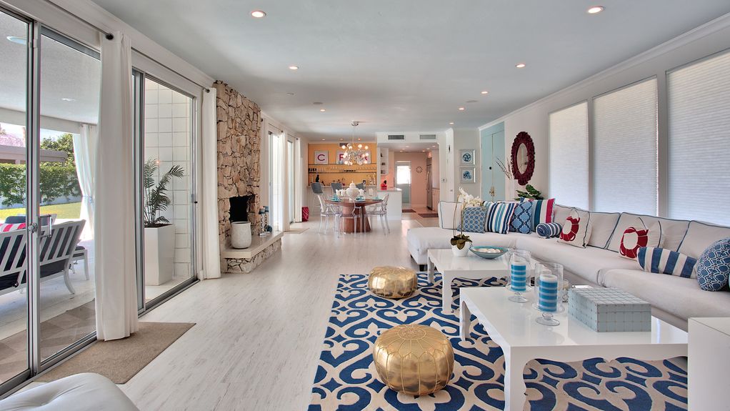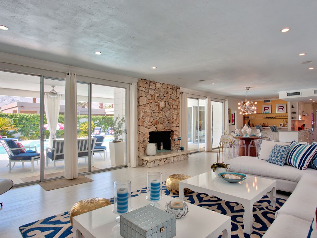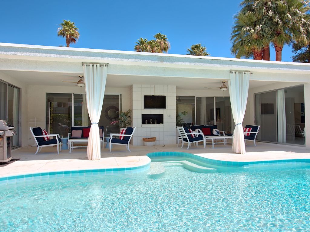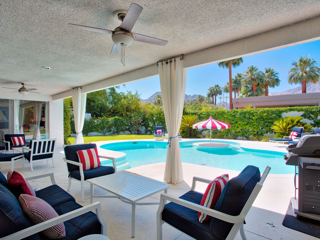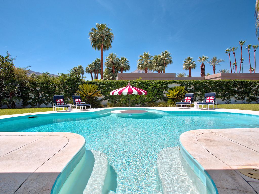 If you’re an I Love Lucy fan, you’ve got to sneak a peek at the Indian Wells abode Lucille Ball and Desi Arnaz used to call home. However, you can do much more than just look now that it is available to rent on Vrbo. Live like the Old Hollywood stars for $500/night in the sweet Coachella valley abode, which has been remodeled to have 21st century luxury while retaining midcentury style.Mint-colored front doors scream vintage as well as vacation, welcoming you in to sun-drenched interiors. Pops of color against white walls add whimsy to the room ands it’s easy to envision Ball and Arnaz entertaining stars at the glamorous pad. One giant space holds the living room, kitchen and a bar, then walls of sliding glass doors opens to the backyard oasis. Sit by the fire pit A large pool with a swim up bar, a fire pit, and a spacious seating area make it ideal for outdoor living.Within the 2,400-square-foot floor plan, there are three bedrooms and three bathrooms so it’s a wonderful spot for a group getaway. As well as being surrounded by palm trees and mountain views, the property’s location is a golf lover’s delight with high end courses sprinkled throughout the area.According to the Vrbo listing, which requires you rent the house weekly, Mike Johnson is the current owner. Today.com first reported the home is available to rent.
