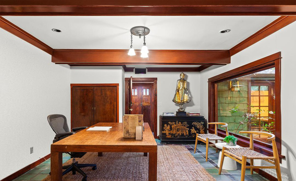 The universally talented Lucy Liu is well known for her elegance as well as her roles in films like Charlie’s Angels and Kill Bill, and Set It Up. The actress, activist, and gifted artist, who currently has an exhibit in the National Museum of Singapore, recently decided to dabble in the world of real estate. Unlike her many successful ventures, this one didn’t quite go to plan. Originally listed at the optimistic price of $4.199 million, the circa-1950s Los Angeles home just sold for a discount: $3.06 million.While the Studio City house didn’t sell for the desired price, it is certainly a stunner. A statement making entryway with an artistic mural greets visitors. The four-bedroom, five-bathroom, 4,098-square foot home features intricate tilework that leads you into the huge, top-of-the-line kitchen. A cozy breakfast nook off the kitchen boasts large windows facing lush gardens outside and eye-catching black and green subway tiles that decorate the walls. It’s the perfect spot to wake up with a hot cup of coffee in the morning. Dark crown molding continues throughout the adjoining living and dining areas and into the home office. A separate family room with beautiful white, pressed tin ceilings adds a grand touch to the artist’s home.The outdoor space is no less breathtaking as the eclectic indoor design. A stone deck flows into a combined pool and spa, while a serene, teal painted teahouse, surrounded by a canopy of trees and abundance of greenery, overlooks the water.Liu purchased the residence back in 2001 from Academy Award-winning Patricia Arquette. The new owner has yet to be identified, but perhaps it has once again stayed in famous hands.Scott Segall and Fredrik Eklund of Douglas Elliman had the listing. The sale was first reported by Variety.