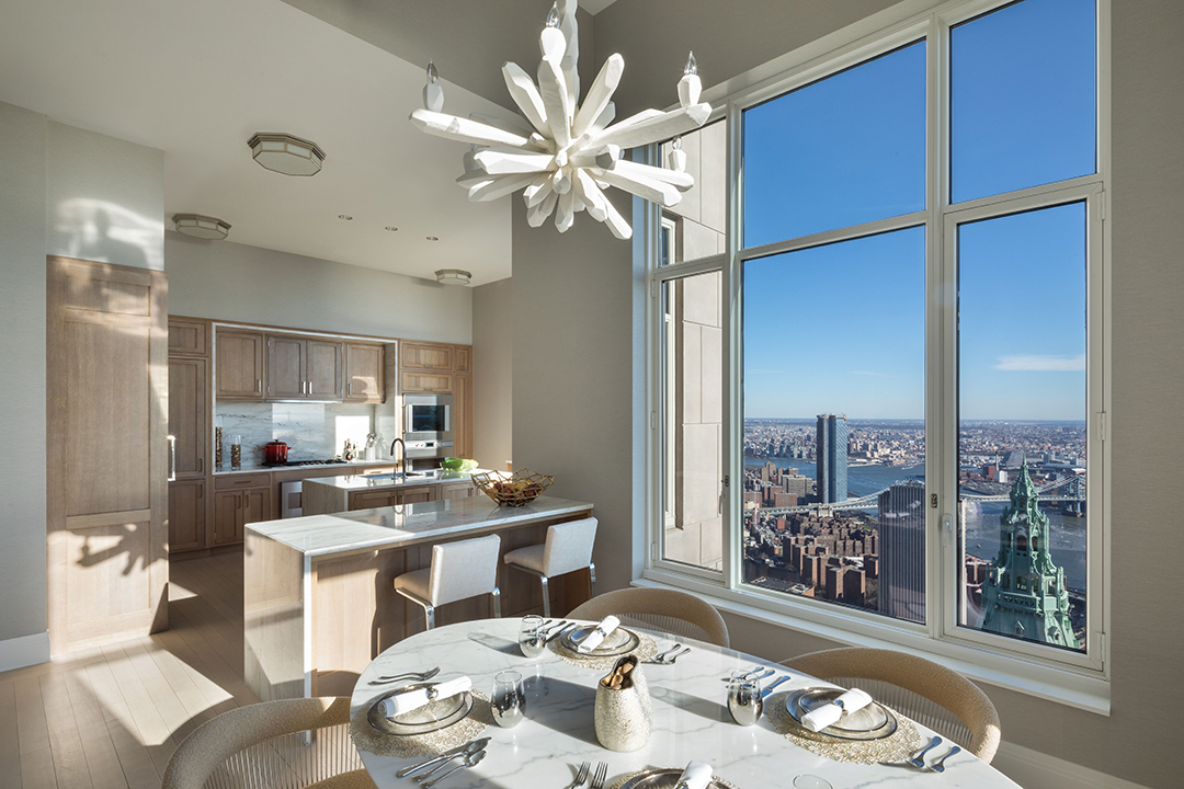 Sitting just a few blocks from the World Trade Center (and accordingly offering sweeping views of the iconic NYC landmark), 30 Park Place is the tallest condominium in downtown Manhattan at 978 Feet. Sitting atop this building is a duplex penthouse, one half of which is on the market. Asking $29.5 million, the 5,937-square-foot space has five bedrooms, 6.5 bathrooms, and was designed by Robert A.M. Stern, with interiors by Santopietro. Most important is the 400 square foot terrace, which in addition to the World Trade Center looks out on the downtown skyline and New York Harbor.