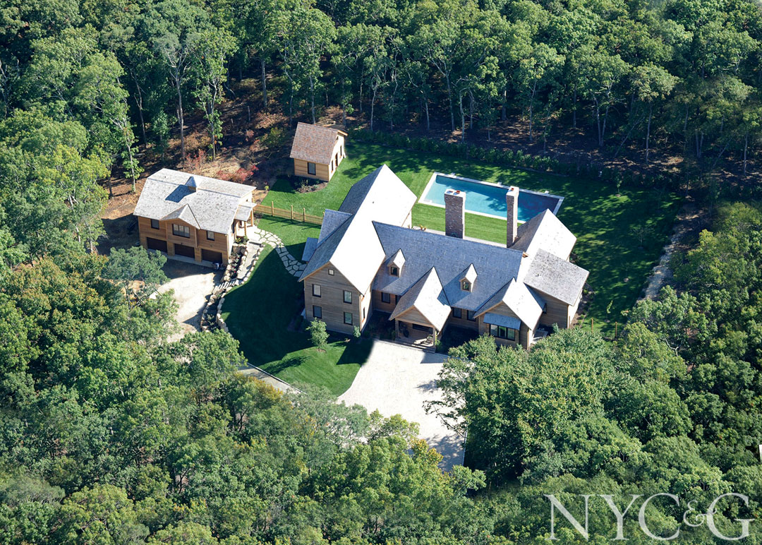 Custom home built by Antonios Alevizopoulos. Traditional, triple A-Frame style Hampton’s home. Interiors by Michele Costello, Costello Studio Inc. and CSI Designs. Offered for sale by Maryanne Horwath, licensed associate broker, Douglas Elliman, Southampton, NY. The property is situated on 6.5 private acres. A peaceful, paved drive brings you to the main house, garage and recreation room, pool and pool house along a valley of beach, oak and maple trees. Exclusive showings by appointment only.
