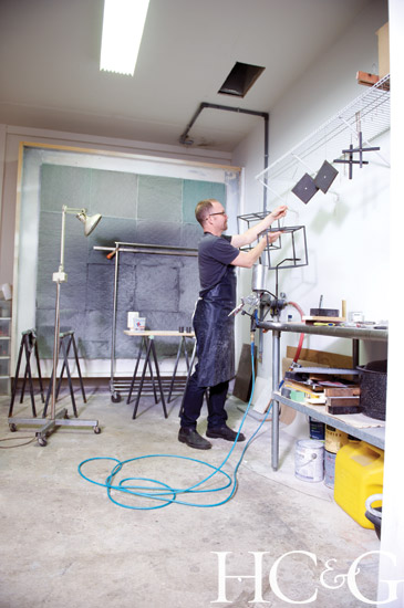 True illumination, Figueredo says, is a dialogue between the quality of the light, its fixture, and the architecture of a space, but everything really starts with the bulb. Whether it’s a simple incandescent, halogen, Xenon, or LED, the type used directly dictates his design and guides him through the stages of creation—sketching, followed by grinding and finishing metal parts, and, finally, fusing and polishing glass or shaping wood.