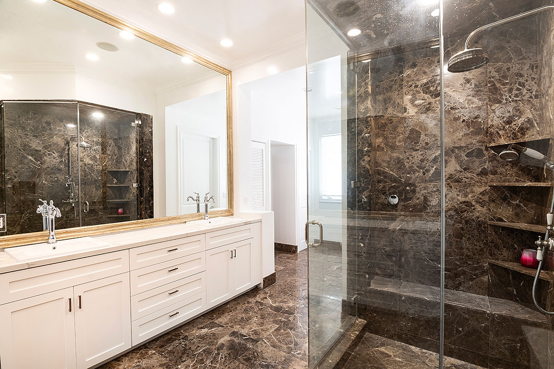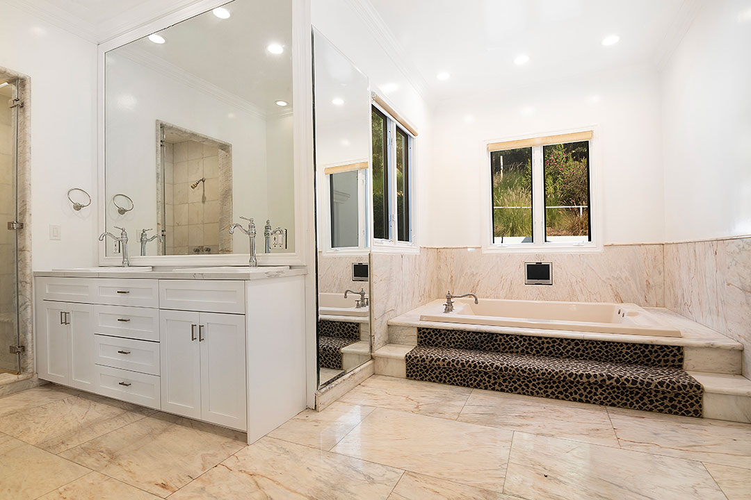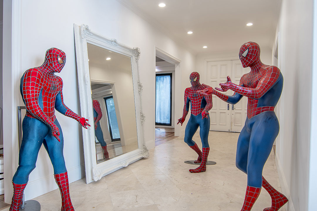 The primary suite boasts two large walk-in closets, his-and-her bathrooms, its own fireplace, and a sauna. Plus, there are two more bedroom for guests. The home’s movie theater seems like an ideal place to honor the past owner, and perhaps host a viewing of one of Marvel’s many movies. Of course, the home is complete with three life-size Spider-Man statues, paying homage to the former owner’s world-famous character.