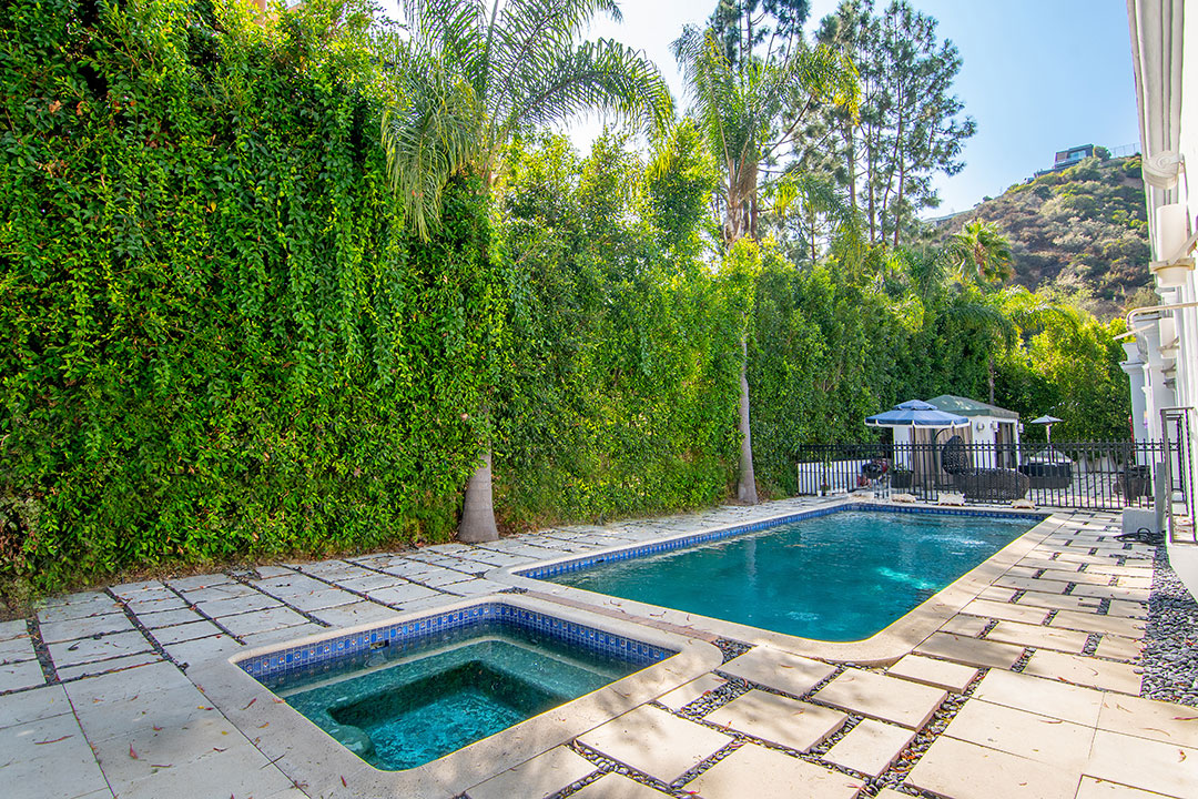 The half-acre lot is also ideal for enjoying the outdoors. A swimming pool, spa, and cabana sit behind the home. A paved upper deck adds an additional space for entertaining.