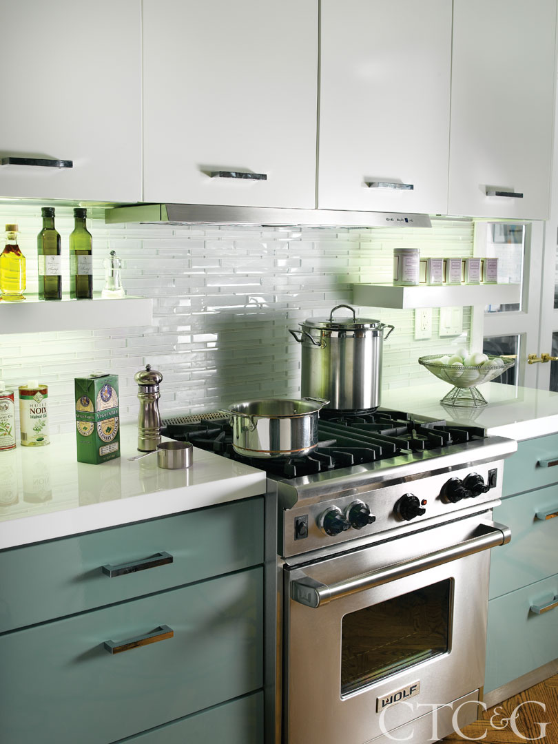 You’re lucky if you have a lot of windows—you’ll have a nice, bright space. I like to have one tall wall of floor-to-ceiling cabinetry. New looks in cabinets allow you to store more dishes and glasses in low cabinets, which was typically unheard of.