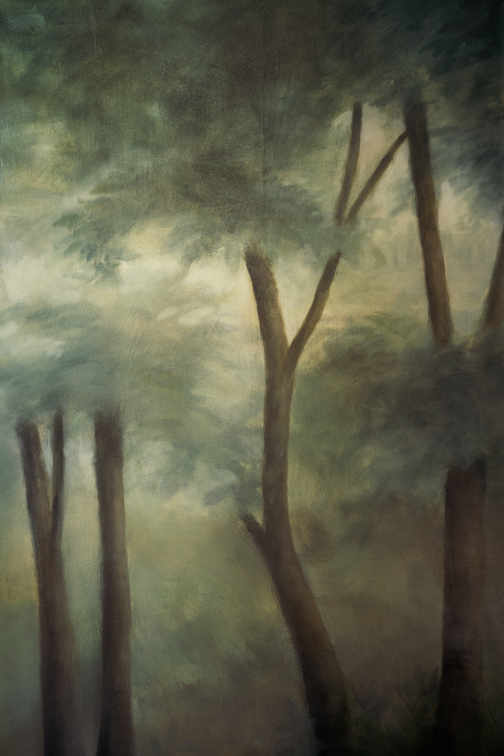 From the initial conversations to the final brushstroke, the process unfolded over several months. That included concept development, refining composition, and creating a palette. The on-site painting itself took about a week, gradually building layers of color and texture until the mural developed the soft, atmospheric quality I was looking for.