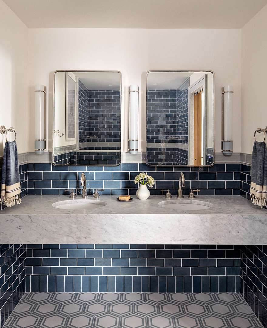 There was serious consideration on how each room flowed together to create a cohesive feel. We also wanted to honor the traditional style of the building with the design decisions, but have them feel innovative. An example of this would be the traditional feel of the primary bathroom with the classic subway tile selection, but the denim blue color makes it feel fresh and unexpected.