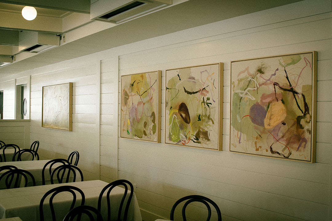 Olivia: All of the paintings, at some point or another, she has created and sold on her own. We chose her work, already knowing that we love those paintings, working with her on the colors in the space to make it perfect.