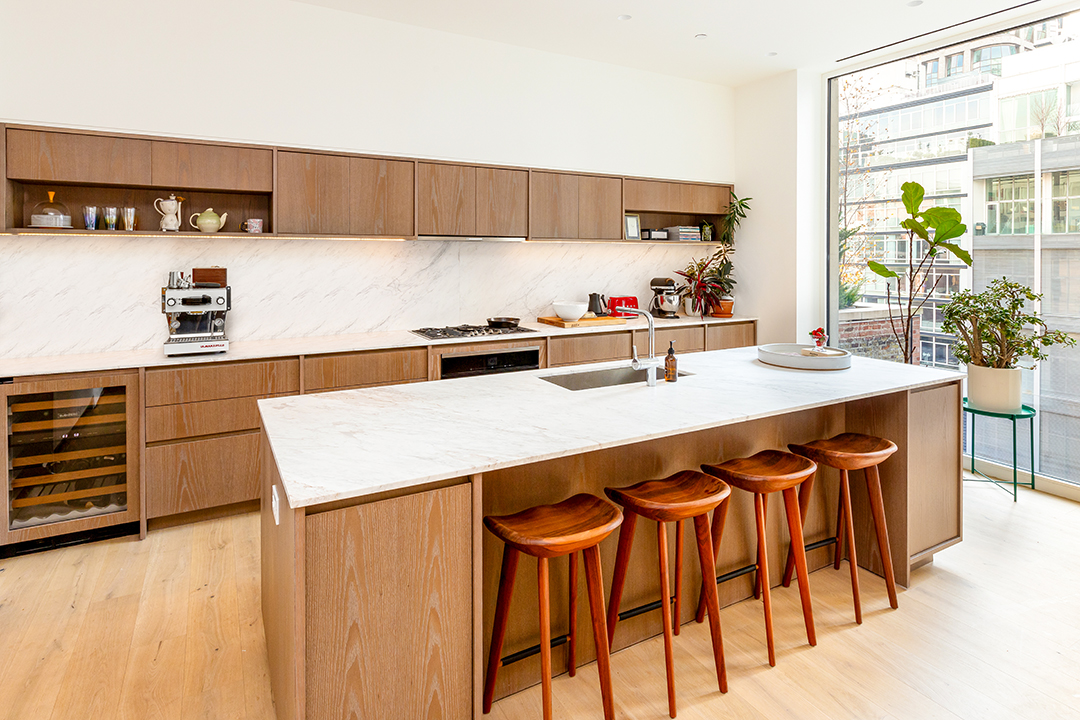 Tosi founded the popular Manhattan bakery Milk Bar in 2008 and has since opened locations nationwide. Meanwhile, Guidara is the former owner of Eleven Madison Park and NOMAD, and also co-produces Hulu’s hit series, The Bear. So, of course you can guess that their three-bedroom home base in the city has a kitchen fit to please even the pickiest chef. From the aesthetics—including custom-designed oak cabinets from Molteni and honed Volakas marble countertops from the mountains of northern Greece—to the functional elements including Miele and Sub-Zero appliances—it has everything one could need.