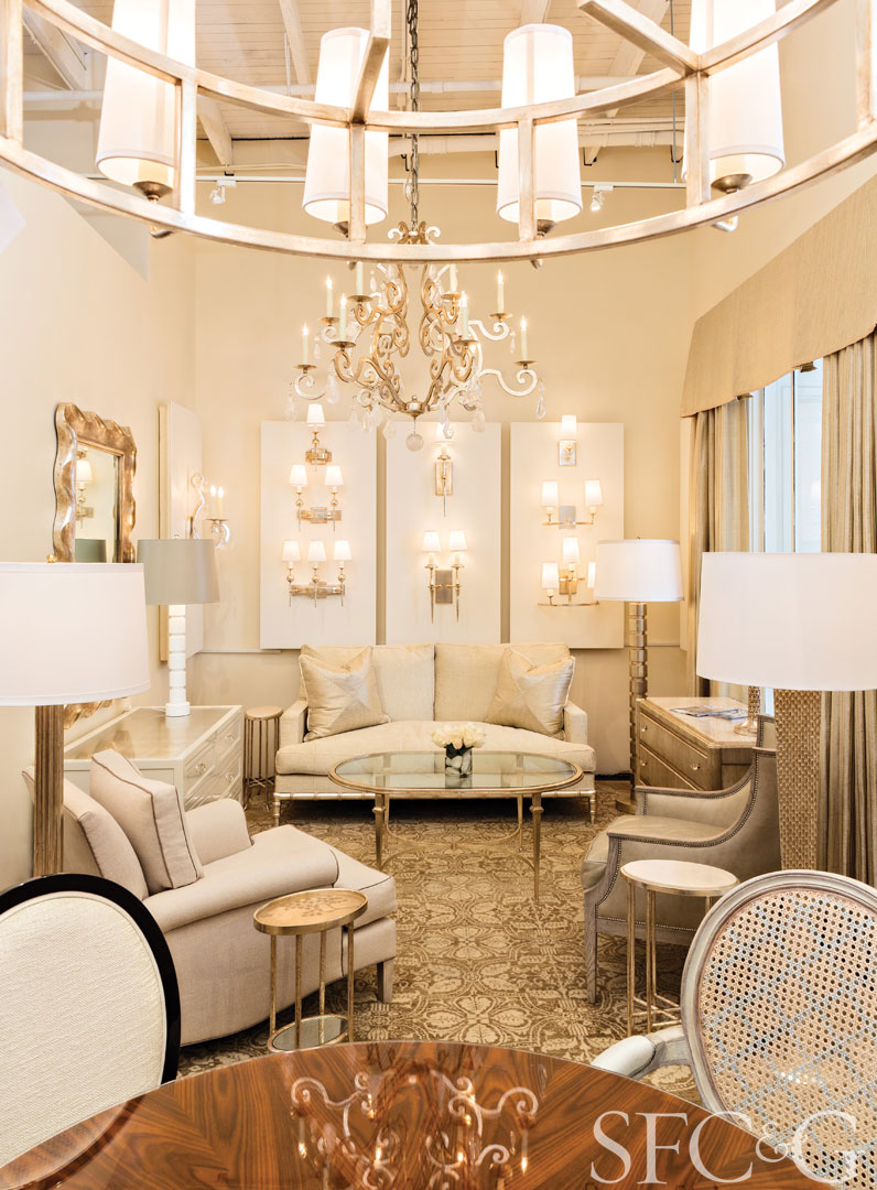 The Georgina Rice showroom at the San Francisco Design Center has opened a new salon by lauded interior designer Nancy Corzine. To showcase her elegant collection, Corzine designed and personally selected the furniture, lighting and fabrics for the showroom space, which features a monochromatic palette highlighted by Venetian silver and soft lighting.