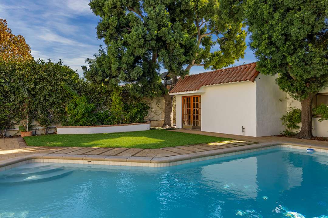 The 3,776 square foot home is designed with color and shape in mind, featuring deep purple cabinetry in the chef’s kitchen and groovy, curving furnishings. You’ll also find imported Saltillo tile and plaster walls, adding lovely texture. A total of four bedrooms and three bathrooms await at the property, including a separate guest house at could be used as a personal studio or podcast space in homage to Bell’s character. Outside, a large pool and hot tub are tucked under the greenery of mature trees.