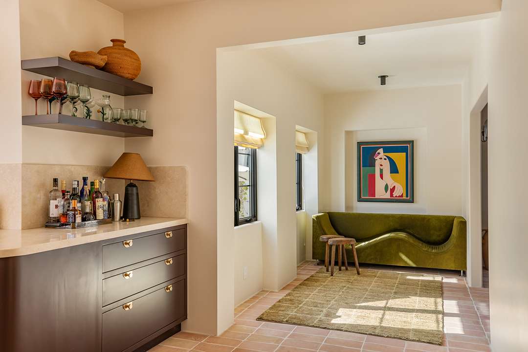 While the original home was built almost 100 years ago, interior designer David Lucido has curated it impeccably. The spaces feel cool and laidback but also feminine and fresh, which may be why producers chose it as the place where the show’s main character records her podcast with her sister. On screen, the home can be seen from both the outside and inside. The entryway, kitchen, and living room all made appearances in the show.