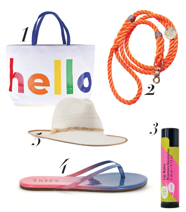 1 Grab one of Lisa Perry’s bright and cheery coated canvas totes for all your beach necessities. Bonus: The lining is water resistant. $195, at Lisa Perry, 67 Main St., East Hampton, 631-324-7333.