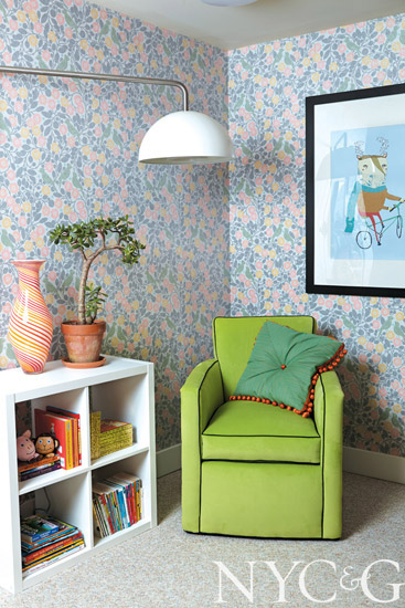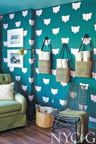 “I layered shades of forest green and ballet-slipper pink in this bedroom and topped everything off with a fox-print wallpaper—just because!” says Brian Patrick Flynn, a designer based in Los Angeles and Atlanta, who made the space even more fun with Alice in Wonderland–like beds fashioned from wingback chairs. “There’s not a lot of natural light in this environment, so I hung an oversize mirror on one wall that replicates a window. It really opens up the room.”