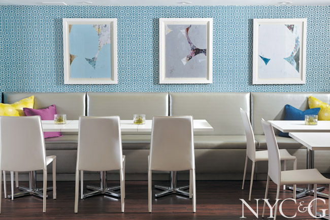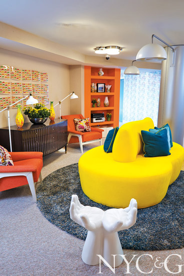 Team efforts always pay off. Designers Drew McGukin, Danielle Colding, and Young Huh became friends while working on Phase I last year and decided to join forces on Phase II. “Our desire was to create an experience,” McGukin says of their work in the tower lounge, which started with whimsical bunny wallpaper designed by Hunt Slonem for Kravet and curvilinear furniture by Verpan, so adults can kick back and relax while watching the children in the kids’ play area have fun.