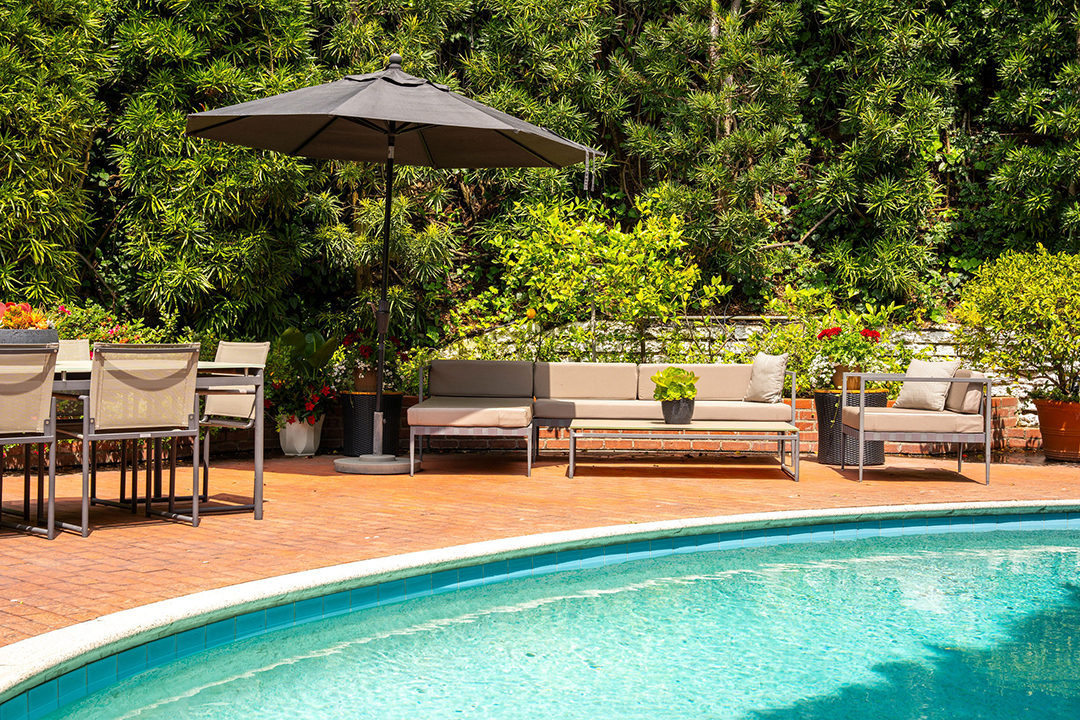 Golden Era Hollywood moments went on to unfold at Scott’s charming home, with guests including her co-star Elvis Presley. Today, the property’s backstory and dreamy updates both contribute to its magic. Buyers can look forward to character-filled spaces inside and thoughtful landscaping outside. Mature fruit trees and a 25-foot ficus hedge for privacy certainly create a Cali-cool ambiance.