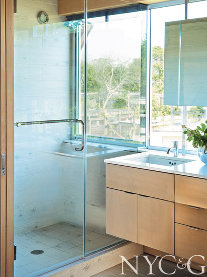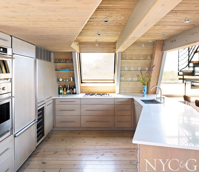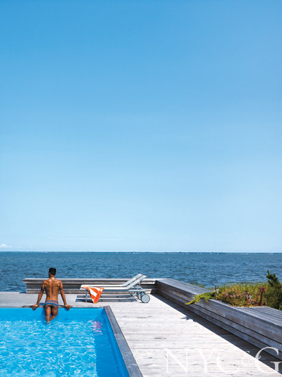 Not so easily done, given the home’s location within the Fire Island National Seashore (FINS) and the area’s complicated building code. Enter Scott Bromley of Bromley Caldari Architects, which has designed and renovated dozens of homes on Fire Island for the past several decades. (Bromley designed the original Studio 54, so we knew the lighting would be flawless.)