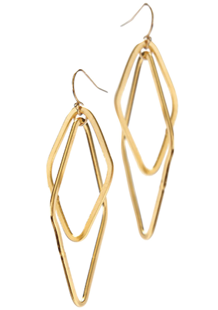 Big Eve handmade double-dangle earrings in 18k yellow gold over sterling silver, $104, at Shaya, 453A Ave. of the Americas, NYC, 347-943-3552, shayanyc.com.