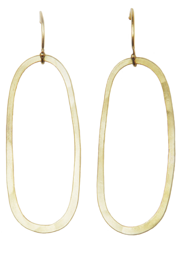 Verbena oval earrings in 19k hammered yellow gold, $1,540, at Jill Platner, 113 Crosby St., NYC, 212-324-1298.