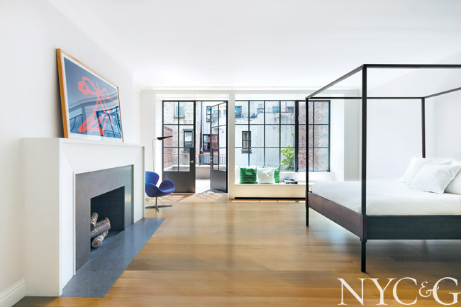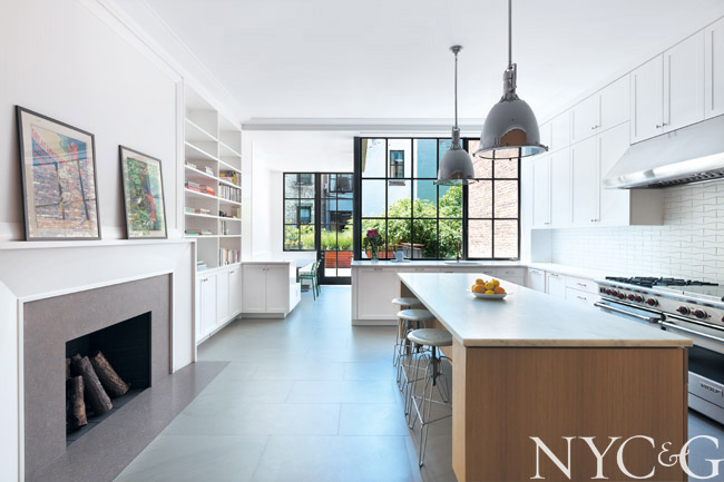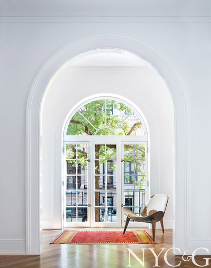 With the building’s façade in dire need of repair, O’Neill and Rose looked at the neighboring Budlong-designed townhouses while re-crafting certain exterior details, including an arched window at parlor level, and replacing missing elements like the stoop, which had been removed long ago. “Having examples nearby was very helpful, as only a few pieces of original ornament remained,” O’Neill says.